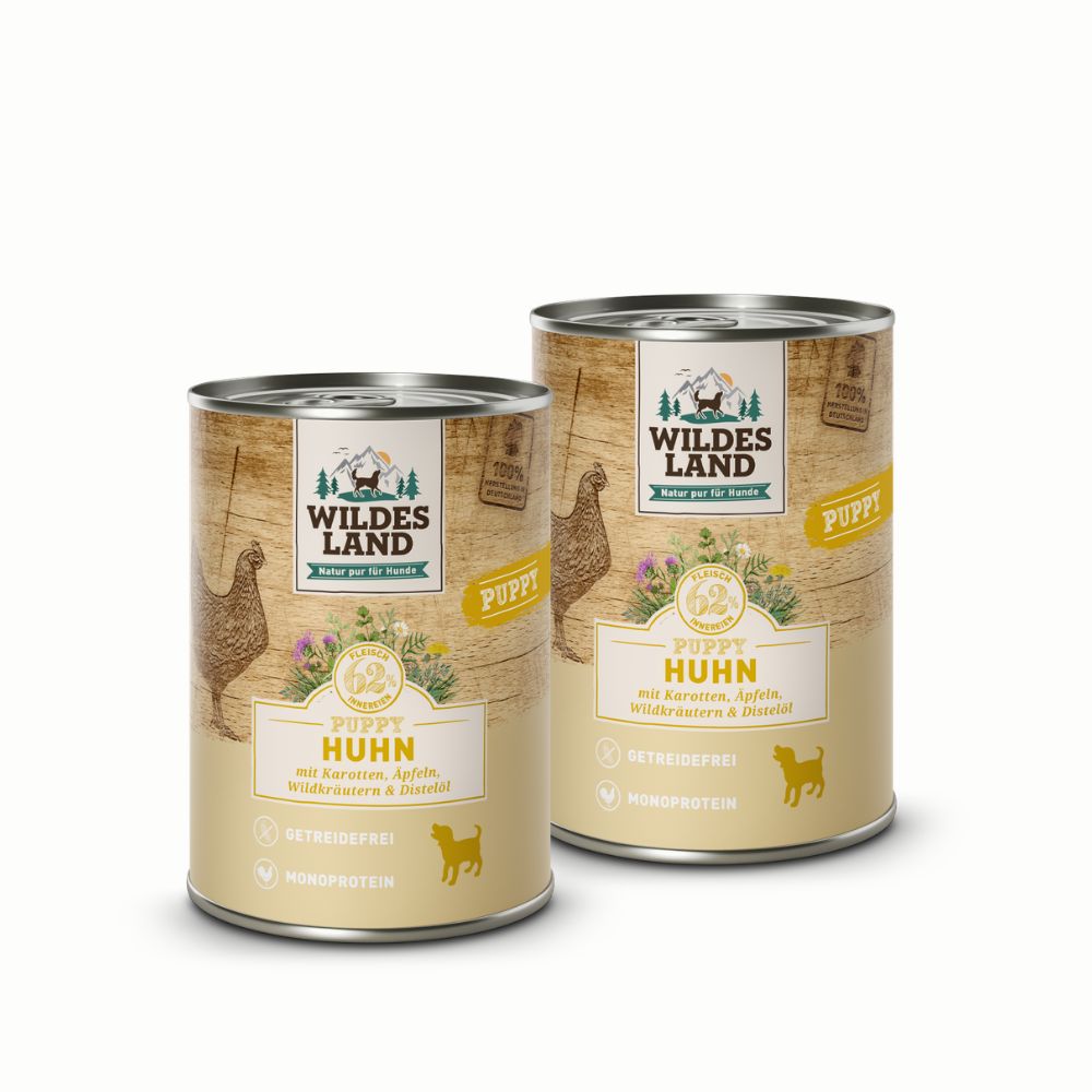 Das Nassfutter von Wildes Land basiert auf der Ursprünglichkeit und Kraft der Natur. Deshalb enthält die Sorte Puppy Huhn kein Getreide und nur eine hochwertige Proteinquelle für eine artgerechte Ernährung.