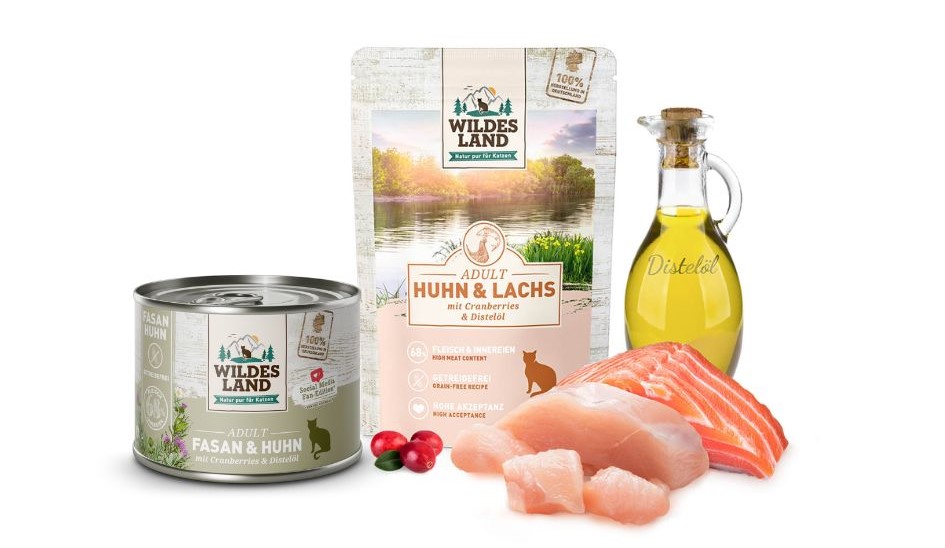 Unser Nassfutter hat einen hohen Anteil an Muskelfleisch und Innereien, mit Cranberries und Distelöl werden unsere leckeren Menüs auch von anspruchsvollen Katzen angenommen. Bei der Produktion verzichten wir auf Farb-, Aroma- und Konservierungsstoffe sowie auf Getreide.