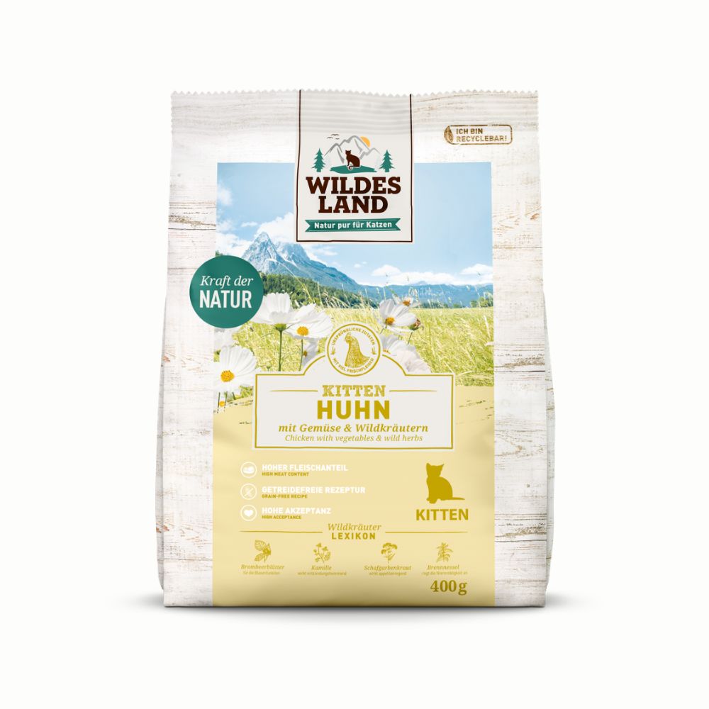 Für das Wohlbefinden und die Gesundheit Deines Kätzchens ist eine ausgewogene Ernährung mit hochwertigen Proteinen unerlässlich. Das Trockenfutter von Wildes Land basiert auf der Ursprünglichkeit und Kraft der Natur.