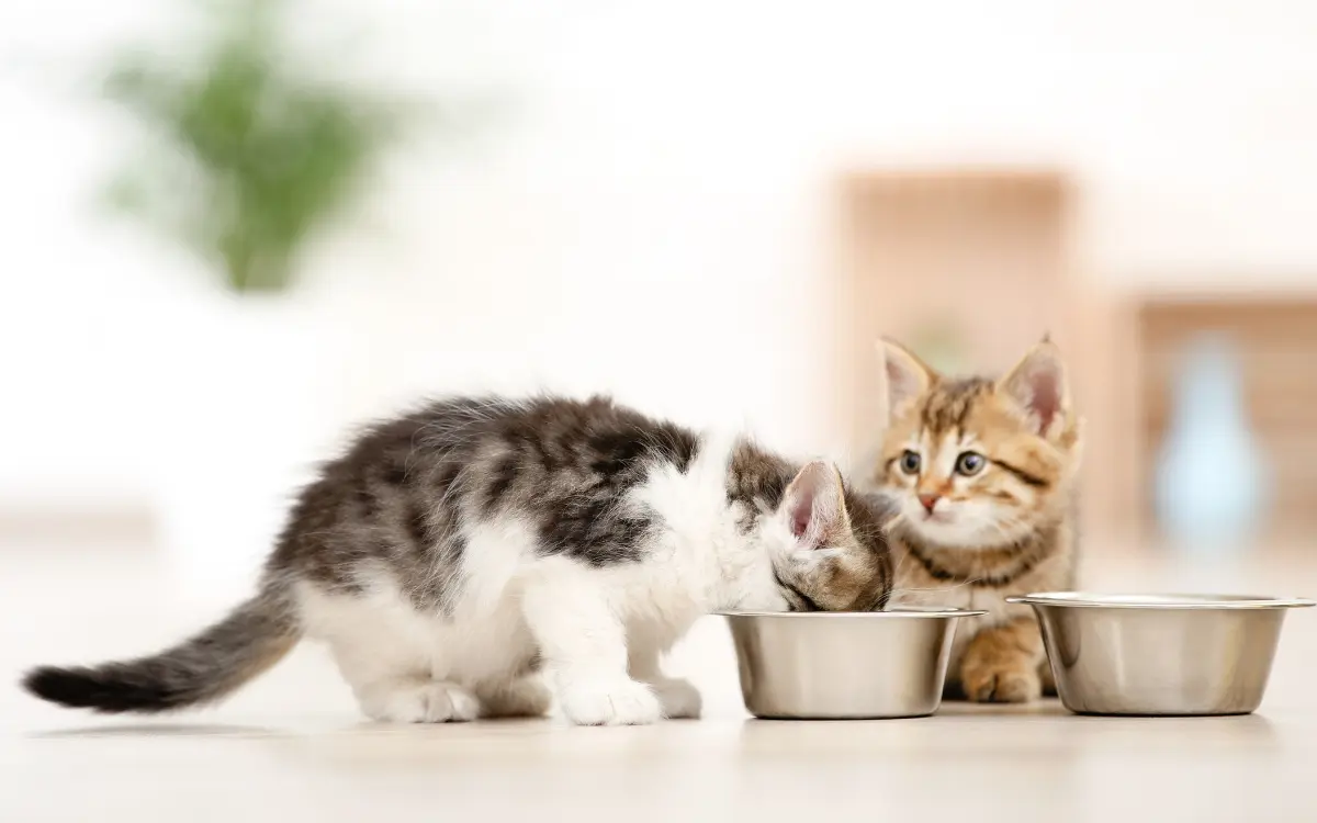 Fütterungszeiten: Kleine Kitten benötigen bis zu 4–5 Mahlzeiten täglich, die Du ab dem 3. Monat auf 3 Mahlzeiten reduzieren kannst.